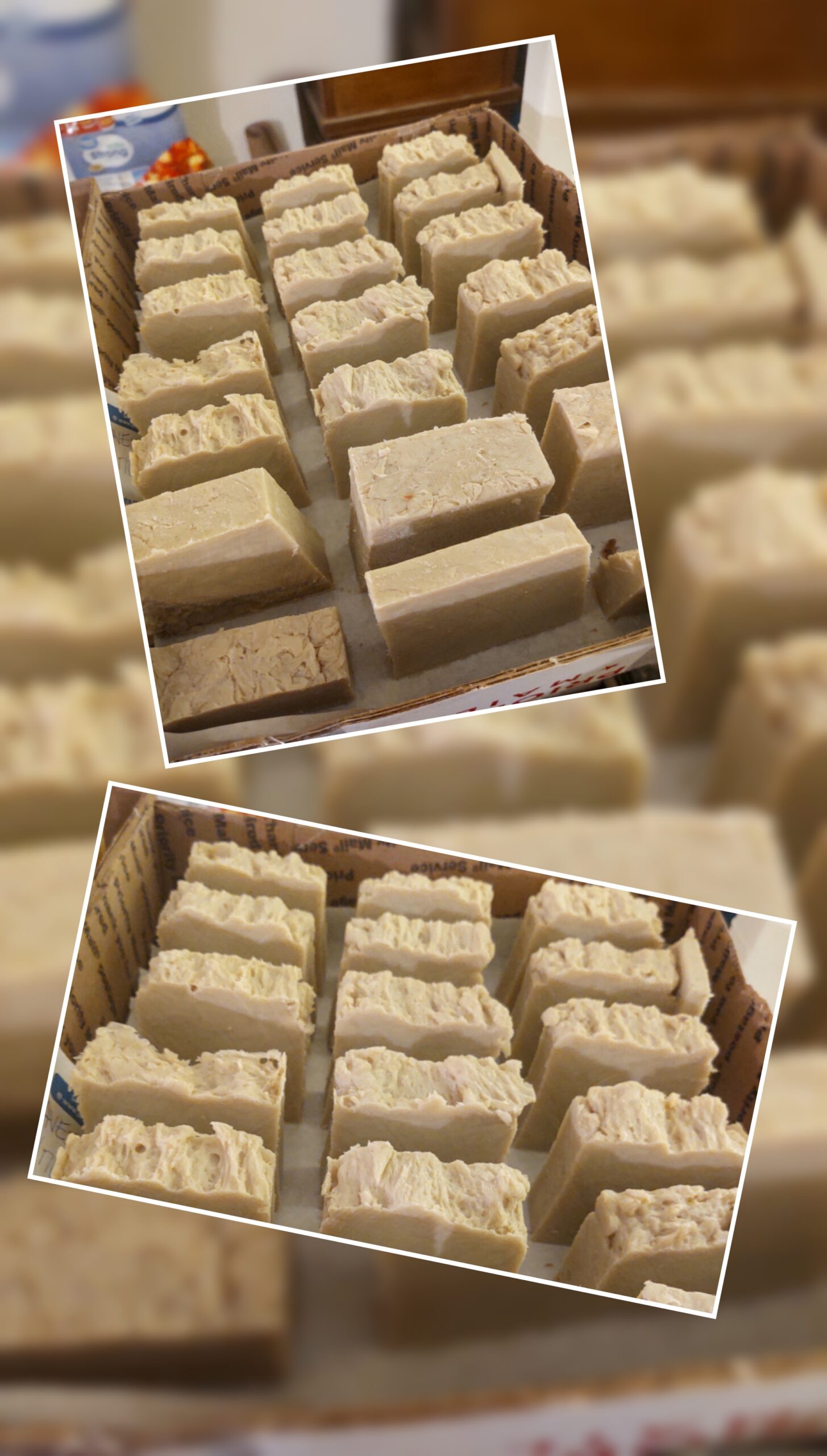 JBB Naturals has three batches of soap curing. Curing means its allowing the excess water in the soap to evaporate, leaving you with a harder