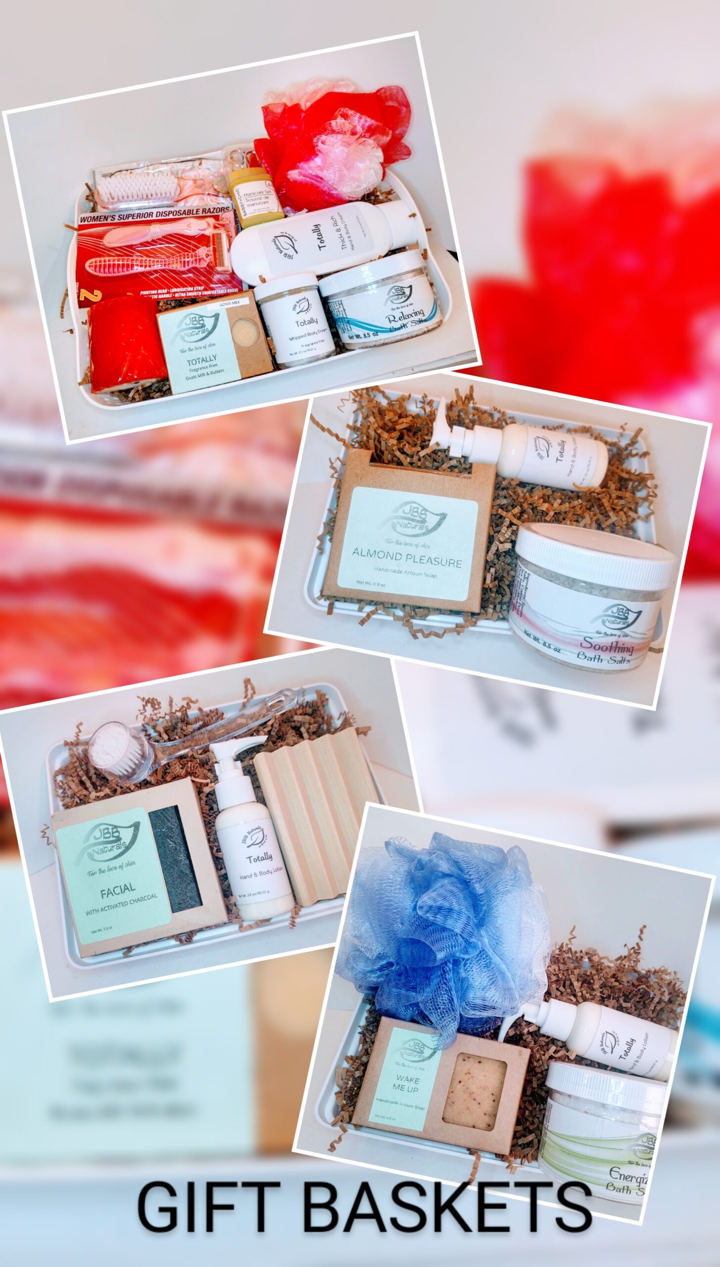 Now that its February, we find that all the stores have been advertising for Valentine’s Day. JBB Naturals Skincare has all types of gift baskets.